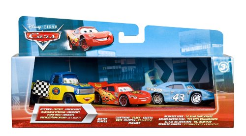 Cars - T0315 - Vehicule Miniature - 3 Vehicules Cars - Dexter Hoover / Flash Mc Queen / Le King Endommagé