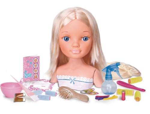 - Description du produit: Avec la tête à coiffer de Nancy, il n'y a pas mieux pour apprendre aux petites filles à créer les plus belles coiffures de Nancy. Le coffret inclut de nombreux accessoires pour que les petites filles deviennent de véritables stylistes de mode: pinces, barrettes, brosse, peigne, spray à eau, petite brosse pour faire des mèches mais aussi des bigoudis.