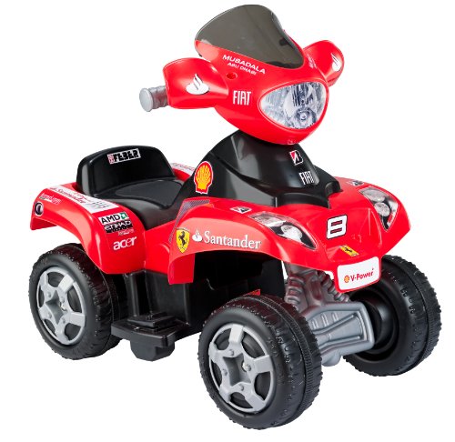 - Description du produit: Un petit quad électrique 6V à licence Ferrari. L'accélérateur électrique est contrôlé par le pied, et le frein se déclenche automatiquement lorsque l'accélérateur est relâché.Batterie 6V et chargeur inclus. A partir de 12 mois.