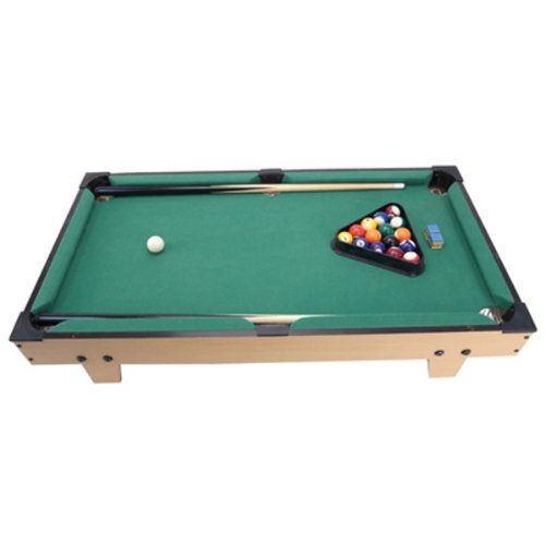 - Description du produit: Billard de table livré avec un jeu de boules, 2 queues, 1 triangle, 2 craies et 1 brosse.