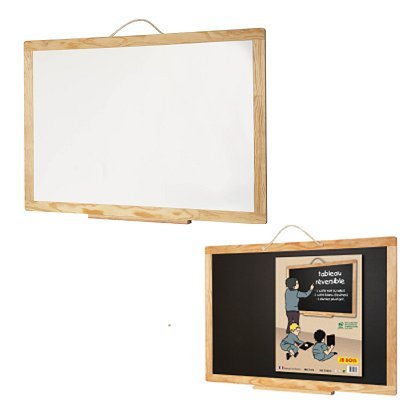 - Description du produit: Un tableau non magnétique mural réversible avec 1 face tableau blanc pour feutre et 1 face tableau noir pour les craies. Livré avec un plumier pivotant. Conseillé à partir de 3 ans. Fabriqué en France.